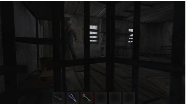 당신은 미치광이에게 붙잡혀 숲 속의 오래된 버려진 집에 있는 금속 철창에 갇힌 피해자로 플레이합니다.