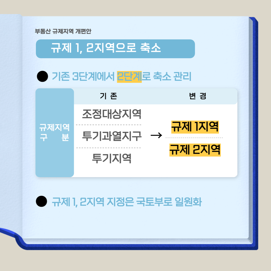 기존 3단계 규제영역(조정대상영역, 투기과열지구, 투기영역)을 2단계로 축소