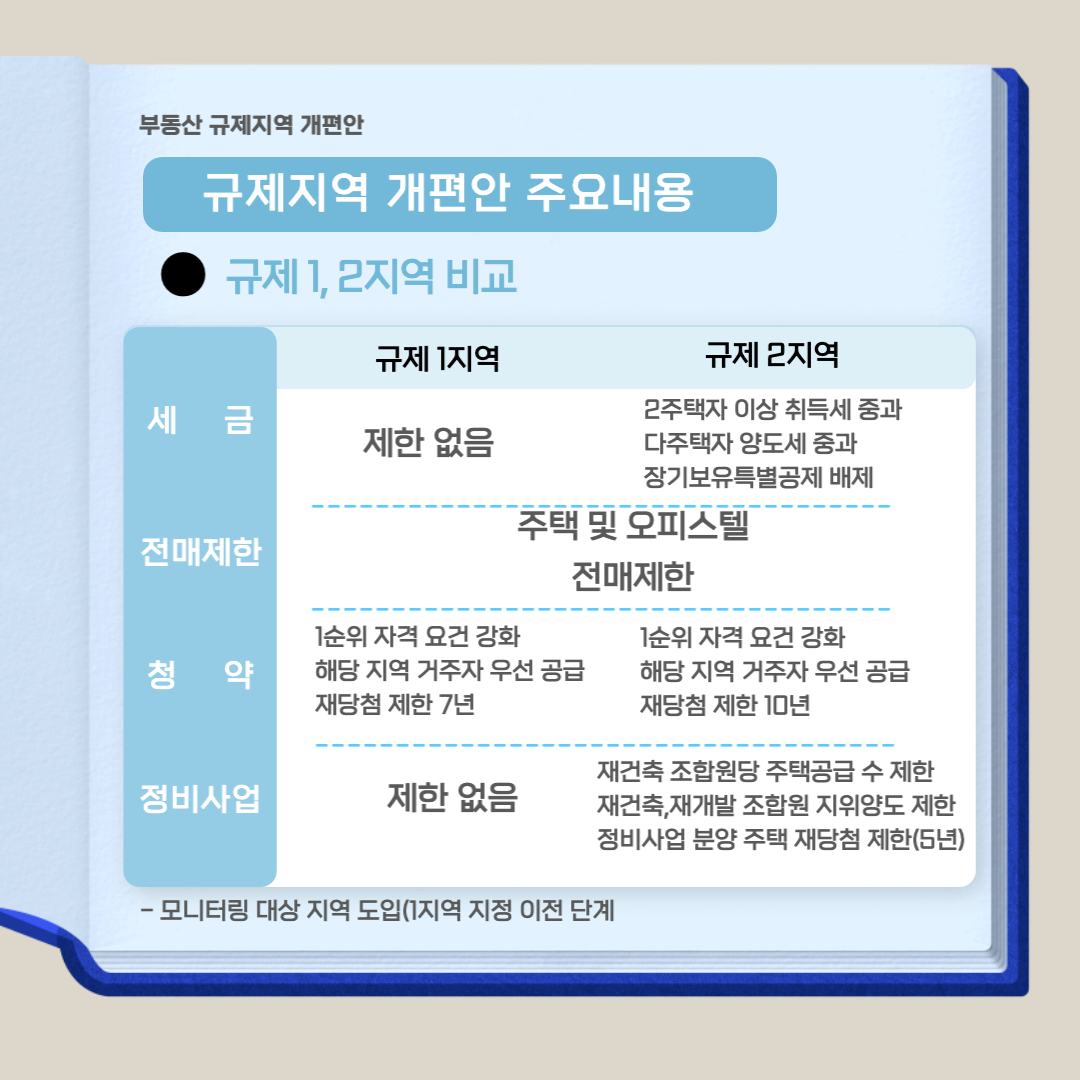 규정 2 영역에는 현재 투기과열지구의 전매제한, 청약 및 정비사업 정보 + 현 지역 조정대상 세금정보가 포함되어 있습니다.