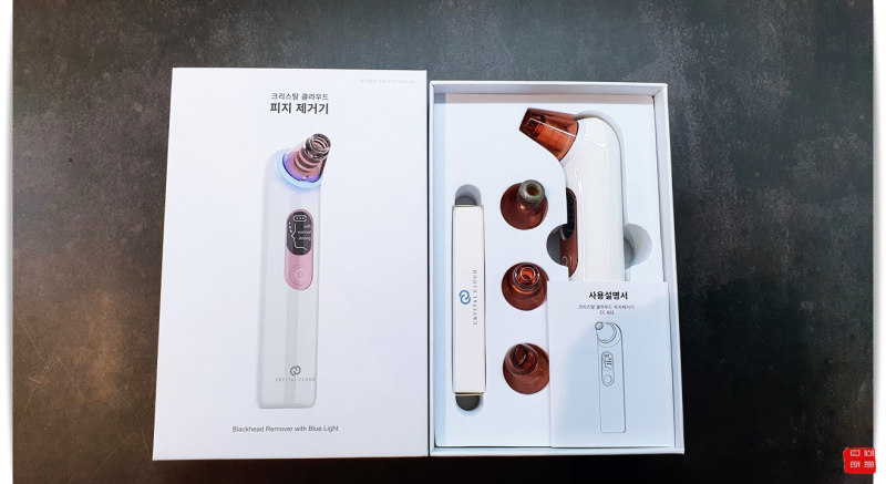 제가 사용해본 제품은 크리스탈클라우드 전동 피지제거기로 면봉이나 손이 아닌 진공을 이용하여 얼굴의 피지를 제거하는 뷰티기기입니다.