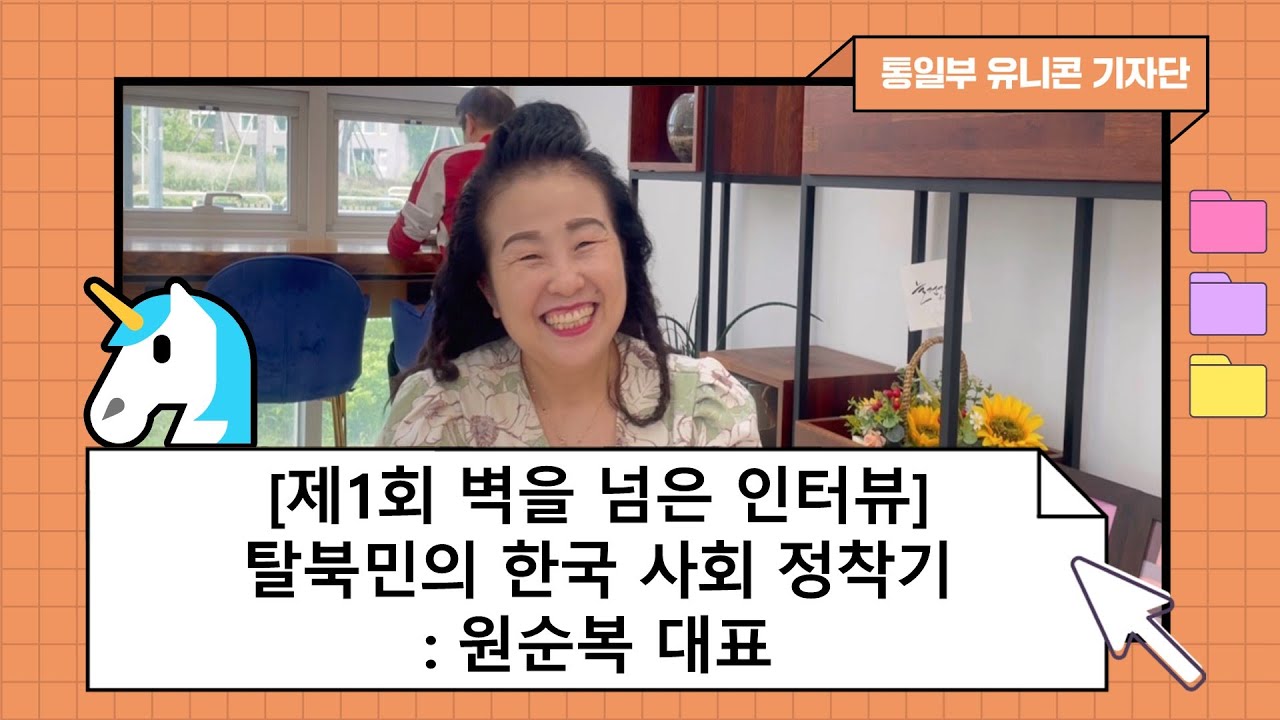안녕하세요. 통일부 유니콘기자단 임선화입니다. 오늘은 서울 강서구에 있는 남북통합문화센터를 방문했습니다. 첫 번째 ‘벽 너머 인터뷰’가 이곳에서 진행됩니다. 이 행사는 남한 사회에 성공적으로 정착한 탈북민들의 성공 스토리를 알아보는 토크쇼입니다. 오늘은 고급 수제 디저트 전문점 ‘원스셰프스푸드’의 탈북민이자 대표이사인 원순복을 만나보겠습니다. 지금 시작해볼까요? 1부 – 원순복 대표이사 소개 – (원순복/원스셰프푸드 대표이사) 안녕하세요. 원순복입니다. 저는 떡제조경영을 전공한 한식디저트 전문가입니다. 현재 세종시에 ‘원스셰프푸드’라는 한식디저트 전문점을 운영하고 있습니다. 만나서 반갑습니다. 저는 함경북도 회령 출신입니다. 2008년에 회령을 떠나 중국에서 10년, 한국에서 10년을 보냈습니다. 총 20년이 되었습니다. 지금은 고향이 모호합니다. – 원순복 대표이사의 한국 생활 – 원순복 대표이사는 한국에 온 후 낮에는 일하고 야학에서 공부했다고 합니다. 이후 대학원에 진학해 떡제조경영학 박사학위를 받았습니다. 또한 수많은 요리경연대회에 참여해 각종 상을 수상했고, 결국 ‘대한민국 한식 명인’이라는 칭호를 얻었습니다. 꿈을 향해 주저없이 도전하는 모습이 대단하다고 생각합니다. (원순복/원삼미식 대표) 여기서 어떻게 토대를 다져야 할까요? 그리고 저도 이제 30대입니다. 30대 한국인을 어떻게 따라가야 할까요? 그런 생각을 많이 했던 것 같습니다. 힘들 때도 있습니다. 왜 힘들지 않을까요? 그래서 힘들다고는 절대 말하지 않습니다. 그냥 행복하게 일하면 됩니다. 여기 계신 여러분, 포기하지 말고 하시는 일을 마무리하시길 바랍니다. 감사합니다. 2부 이어서 청중과의 Q&A 세션이 있었습니다. 많은 분들이 질의에 참여해 주셨습니다. 저도 참여해서 원순복 씨에게 북한 생활과 남한 생활의 차이에 대해 물었습니다. 원순복 씨는 “북한에서는 한 달만 열심히 일해도 일주일치 월급밖에 못 받는데, 남한에서는 노력한 만큼의 급여를 받는다. 그게 가장 큰 차이”라고 답했습니다. 더 열심히 일할 수 있는 동기를 부여해 주었다고 덧붙였습니다. Part 3 마지막으로 원순복이 직접 만든 프리미엄 정과를 시식하는 시간이 있었습니다. 프리미엄 인삼 정과와 식혜가 준비되었습니다. 너무 예쁘죠? (안향아/청소년 패널) “벽을 허문 첫 인터뷰의 청소년 패널리스트 안향아입니다. 오늘 함께 해주신 모든 분들께 감사드립니다.” Q. 행사 참여 소감을 말씀해주세요. A. 우리 국민들은 탈북민을 떠올릴 때 막연하게 ‘북한’을 떠올리는데, 이런 다양한 프로그램이 더 많이 나와서 남과 북이 사회적으로 하나가 될 수 있는 다양한 문화예술 프로그램이 있었으면 좋겠다고 생각합니다. 그런 의미에서 (오늘 행사는) 정말 좋은 프로그램인 것 같습니다. Q. 통일에 대한 소망을 한 마디 해주세요. A. 원 대표님처럼 재능이 있는 사람, 재능을 쓰려는 사람, 열심히 일하려는 사람, 통일이 되어서 원 대표님처럼 잘 살 수 있다면 더 많은 사람들이 행복해지지 않을까요? 행복한 통일이 될 것 같습니다. (첫 인터뷰 벽 극복 현장에 가보았습니다. 어떠셨나요? 꿈을 이루기 위해 열심히 노력하신 원순복 대표님이 그 꿈을 살아가는 모습이 정말 멋지다고 생각했습니다. 남한 사회에 적응하기 힘들어하는 탈북민들이 있을 겁니다. 원순복 의원처럼 꿈을 향해 한 걸음 내딛어보는 건 어떨까요? 당신의 재능이 빛날 날이 반드시 올 것입니다. 통일부 17기 유니콘기자단 임선화입니다. 시청해주셔서 감사합니다.